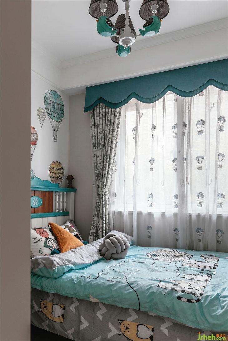 業(yè)主家有個(gè)四歲的小男孩,兒童房我們選配了環(huán)保等級很高的美式實(shí)木家具,淺孔雀藍(lán)配搭玳瑁色原木家具,氣球背景墻布的沙漠紅與成品家具顏色相互呼應(yīng),窗簾的幔頭我們也選配主打淺孔雀藍(lán),比斯開灣藍(lán)色收邊體現(xiàn)精致感,貓頭鷹燈具與壁燈造型相映成輝,紗簾上的小氣球,每個(gè)細(xì)節(jié)都體現(xiàn)了設(shè)計(jì)師的用心之處。
