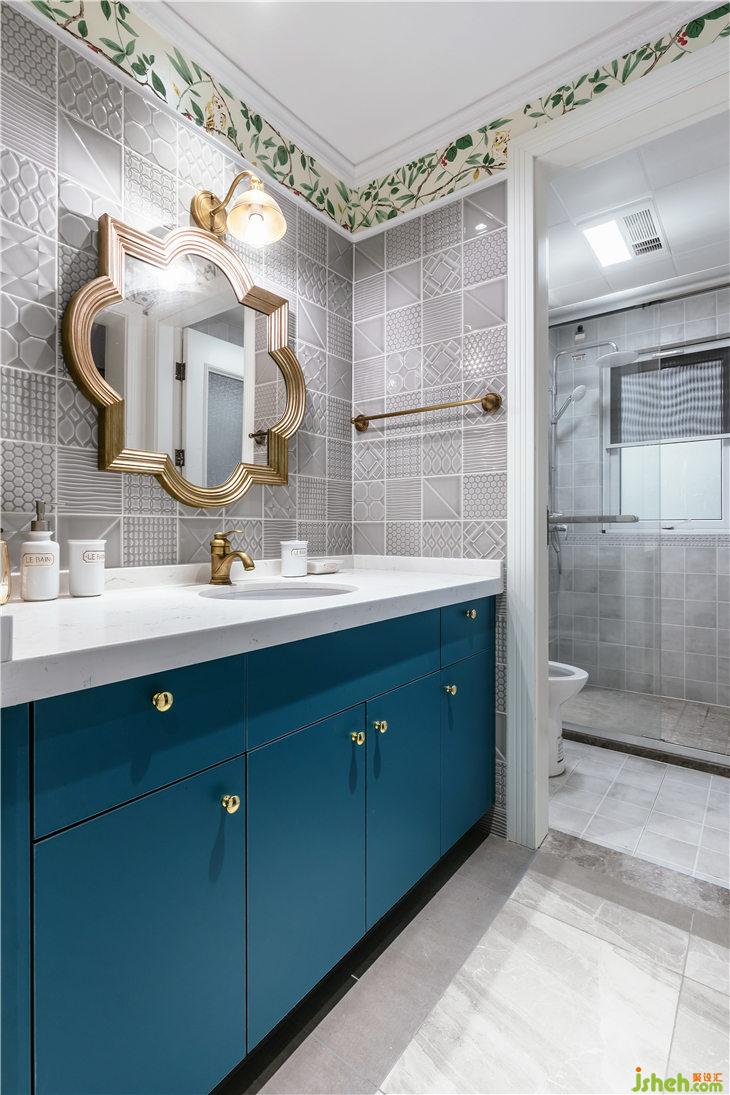 孔雀藍(lán)的柜門是專門定制的,把手特意選了亮金色,凸現(xiàn)氣質(zhì)。