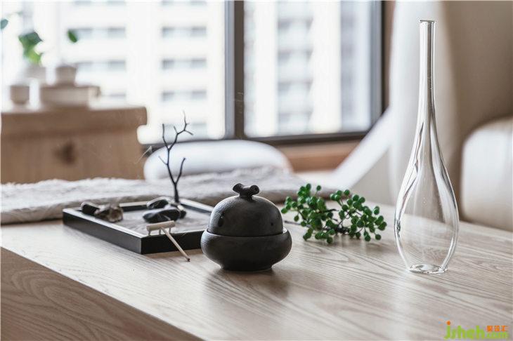在客廳的飄窗設(shè)計了圓拱造型,形成了圓形的取景框,營造一種富有詩意的畫面感。整個空間的木色飾面,使用KD板材料,更加細(xì)膩和整體。
