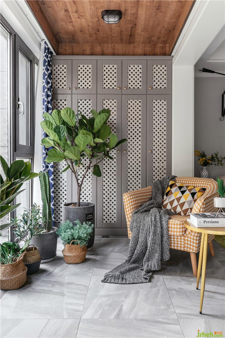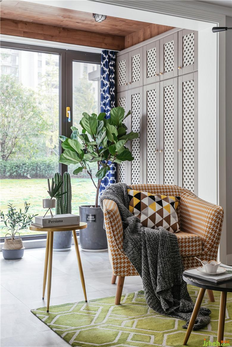 業(yè)主房子在一樓,南院有個大綠地草坪,將室外綠化美景引入室內(nèi)也是室內(nèi)設(shè)計師設(shè)計的一個重點。
