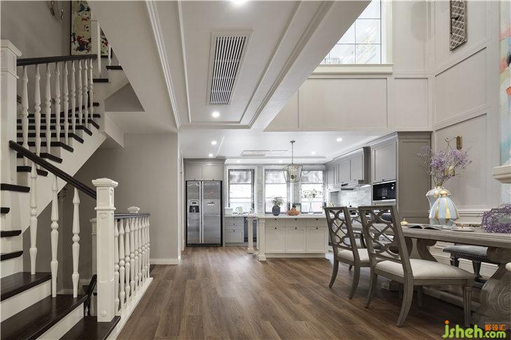 內(nèi)嵌的電器高柜美觀大氣,與餐桌位置相鄰,方便廚房與餐廳空間的使用。
