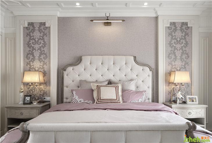 主臥墻面以壁紙和護(hù)墻板造型結(jié)合設(shè)計(jì),與頂面進(jìn)行分色。主臥空間層高三米,床靠背以美式的麻布背扣搭配木質(zhì)邊框。吊頂保留了原始頂面的高度,2.9m高的層高將房間的氣質(zhì)整體展現(xiàn),石膏線條層次豐富,造型多變,細(xì)節(jié)精致。
