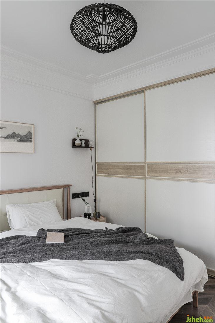 爺爺喜歡閱讀,床頭的一側(cè)我們設(shè)計了吊燈,床頭柜則是開敞式的,如同一個小小的書架。