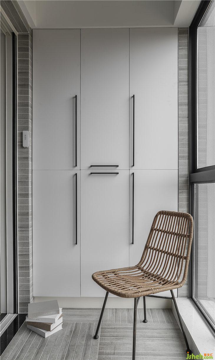 抽縫啞光木紋磚與白色烤漆木門搭配,點綴鐵藝藤椅,讓爺爺奶奶平時在這里曬曬太陽,享受晚年生活的安逸。