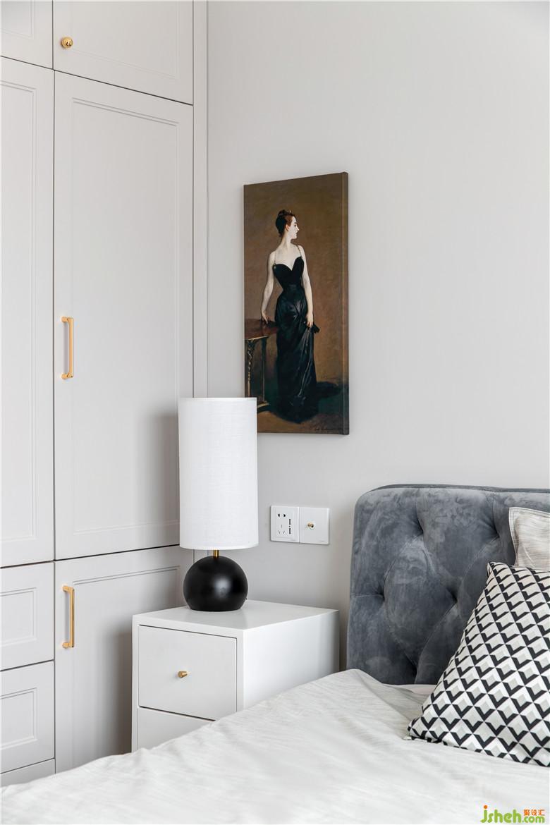 次臥色調(diào)則整體淡雅,素色的乳膠漆墻面搭配簡(jiǎn)單的裝飾,香檳色的柜門把手和鵝黃色絨布窗簾,讓空間更顯雅致。