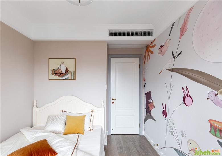 兒童房做了成長(zhǎng)式設(shè)計(jì),業(yè)主有一對(duì)可愛(ài)的雙胞胎女兒,雙方的父母都需要來(lái)照顧孩子,暫時(shí)給長(zhǎng)輩使用,一面墻童趣壁畫,搭配旋轉(zhuǎn)木馬頂燈,體現(xiàn)孩童趣味。