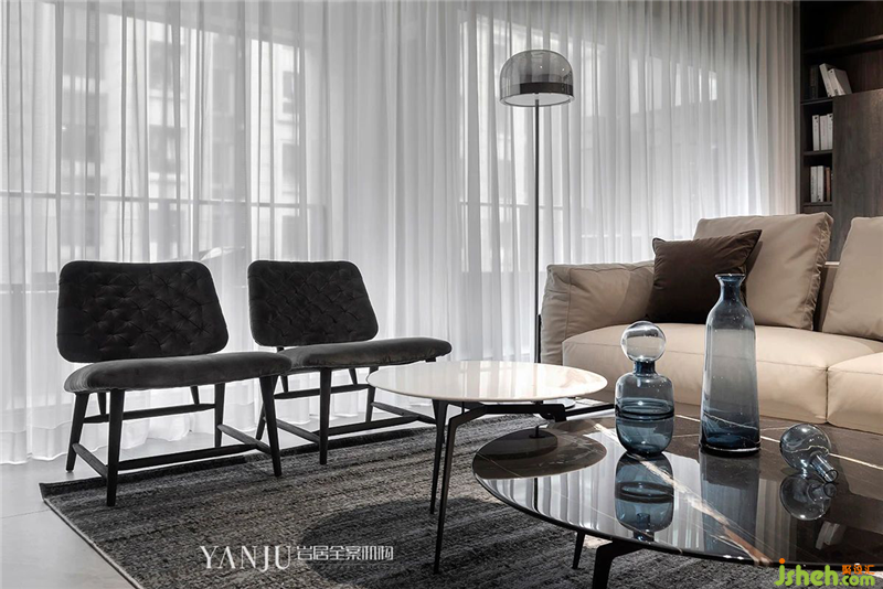 窗簾只采用一層薄紗,僅僅只考慮隱私保護(hù)。同時(shí)打通整個(gè)陽(yáng)臺(tái)滑門,讓自然光線更多的進(jìn)入到室內(nèi)。