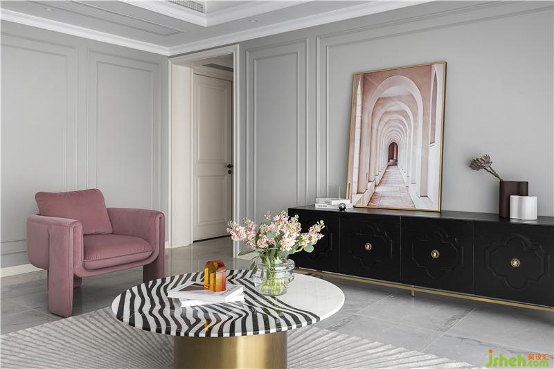 客廳的風(fēng)格和諧大氣,流暢的線條簡(jiǎn)約干凈,墨綠色沙發(fā)搭配斑馬紋茶幾,給空間增添了一份藝術(shù)色彩。
