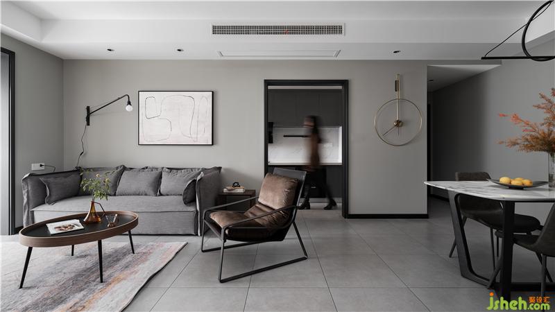 淺灰色沙發(fā),輔之一把棕色單椅,沉穩(wěn)的氣場(chǎng)直接hold住全場(chǎng),再加上現(xiàn)代感很強(qiáng)的掛畫和黑色金屬壁燈,整個(gè)客廳裝修設(shè)計(jì)彰顯著簡(jiǎn)約藝術(shù)的氣息格調(diào)。