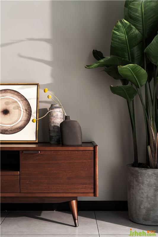 客廳的大落地窗讓室外的景色透進(jìn)來,整個(gè)空間更加明亮、通透。泡上一壺茶,用心感受遲暮與朝霞的魅力。懸掛在墻上的圓形個(gè)性裝飾鐘,為客廳平添了一絲藝術(shù)氣息。