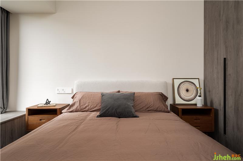 粉色永遠(yuǎn)是浪漫的主題,配上深色的家具,讓房間更有質(zhì)感,小飄窗讓臥室更加明亮。