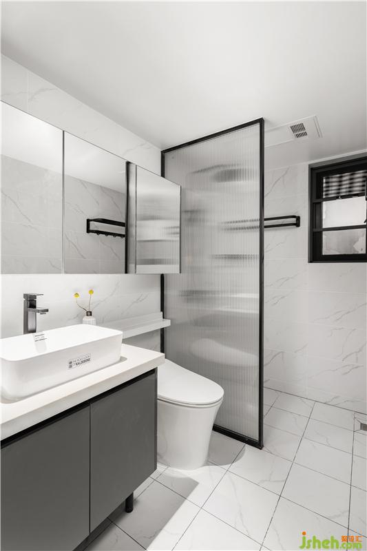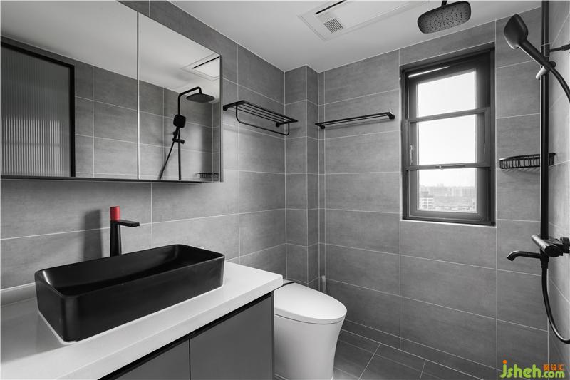 次衛(wèi)主打淺灰色,增強(qiáng)了空間質(zhì)感,讓整個(gè)空間顯得純粹、干凈。