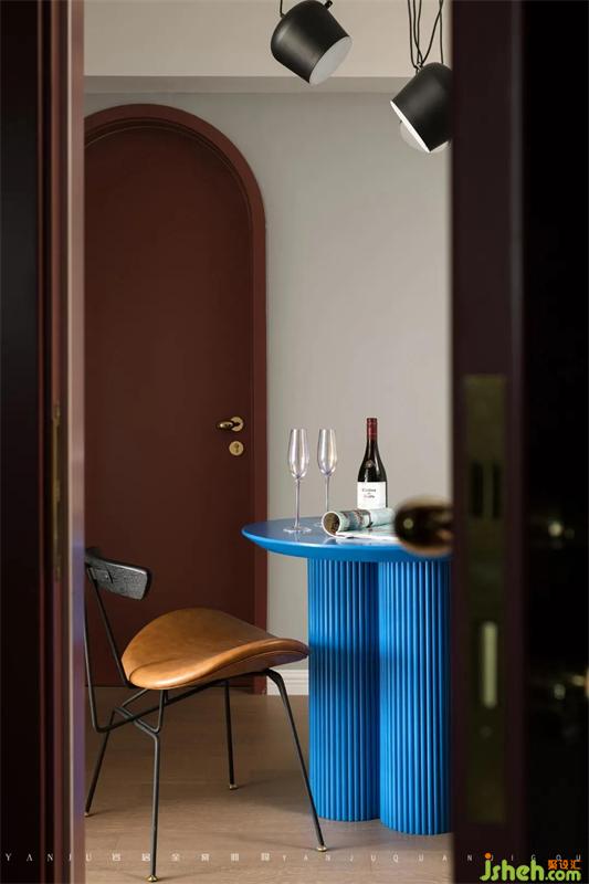The layout of the restaurant is very clever. It is neither a traditional open nor a closed one. The semi-open style cleverly divides the guest dining room and the home, and the three are properly integrated: the flow from the kitchen is reasonable, which is convenient for the residents to use; it is semi-integrated into the living room, The area is increased visually, making the space flexible and tactile.
