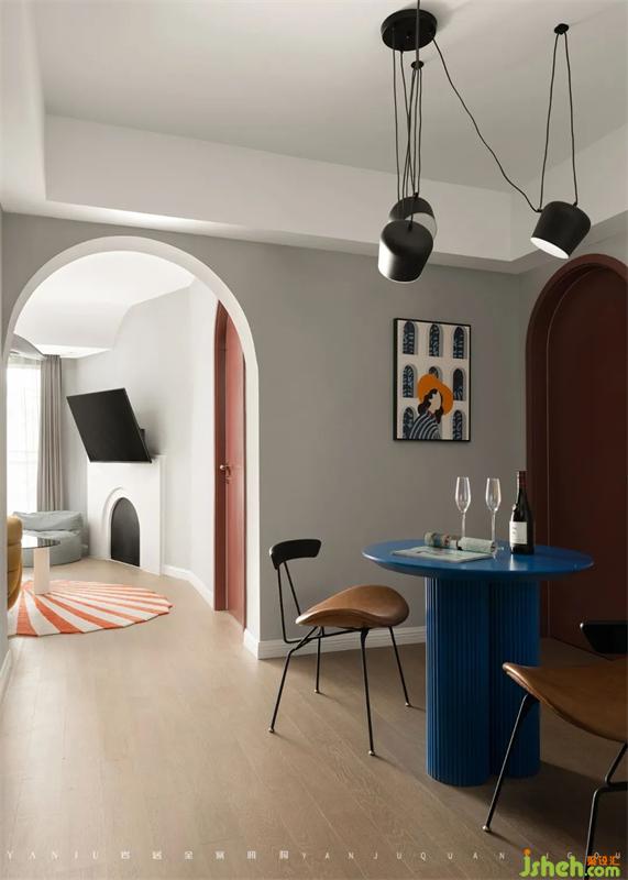 拱門的設(shè)計讓光源充分引入餐廳,整屋大量使用業(yè)主喜歡的金色、藍(lán)色、黃色元素,視覺上鮮明而不過分耀眼。