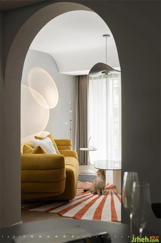 The design of the arch allows the light source to be fully introduced into the restaurant, and the entire house uses a large number of golden, blue, and yellow elements that the owner likes, which is visually distinct and not excessively dazzling.