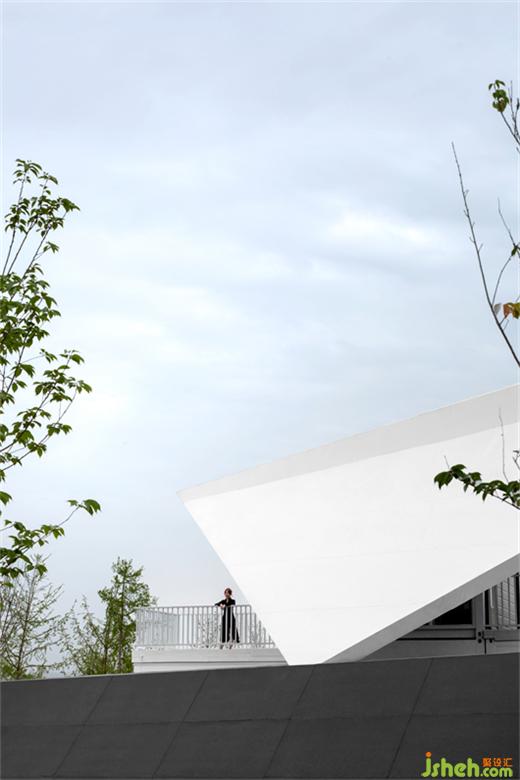 Under the "cloud", the original building is surrounded by lines that strengthen the sense of strength andvolume of cutting changes to achieve a sense of spatial independence. The collision of black and whitecolors and the combination of stone and cloud form a dialogue between mountain and sky. The creation of such a stone sculpture with a sense of solid cutting makes the whole building very recognizable interms of the identity of the facade, and stands on the lawn and complements the natural scenery.