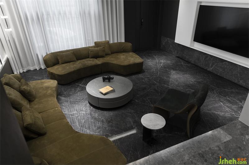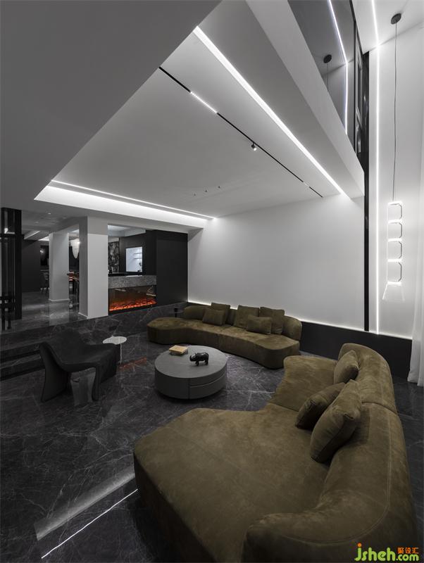 本案打破別墅原有建筑外觀的局限框架.結(jié)合居住的生活需求,從空間的營(yíng)造上出發(fā)?,F(xiàn)代元素的既簡(jiǎn)手法。會(huì)客廳的下沉式結(jié)合部分挑空。圍合感十足。即保留外建筑原有的弧形窗不被功能的抵用而有所破壞,同時(shí)增加了空間的合理利用,高低位收口輔助天際線的穿梭連貫,拉高了視覺(jué)上會(huì)客廳的高度,別墅設(shè)計(jì)保留原有別墅高廳的味道,又增加了2樓房間的懸浮感。