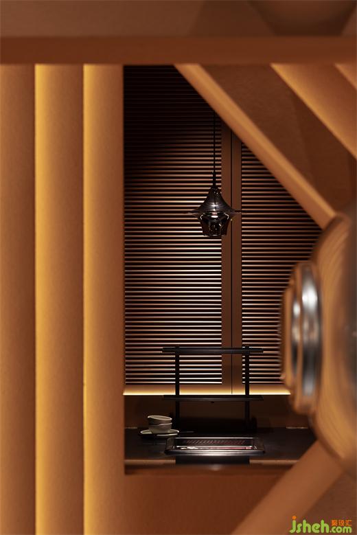 通過柯布西耶的粗野主義和超現(xiàn)實(shí)美學(xué),在虛實(shí)之間。光影之途里,餐廳設(shè)計(jì)衍生出了一曲幾何建構(gòu)下的盜夢(mèng)逆空間狂想。壽喜燒餐廳設(shè)計(jì)以鏡面空間,以模糊空間,以氛圍洗光,在極端受限的三維空間里締造第四維度,探索空間的更多維度可能性。