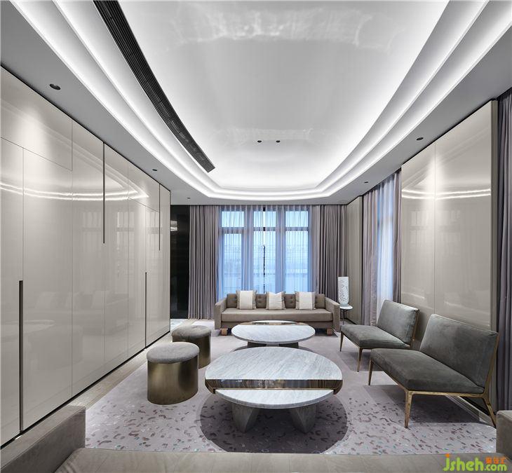空間承載著生活,設(shè)計不僅與美有關(guān),更多的是去關(guān)乎人。開放性的生活區(qū),金屬銅條邊飾帶來的奢華感,質(zhì)感高貴的深灰色布藝皮革沙發(fā),無聲地訴說著高雅低調(diào)的空間語言。