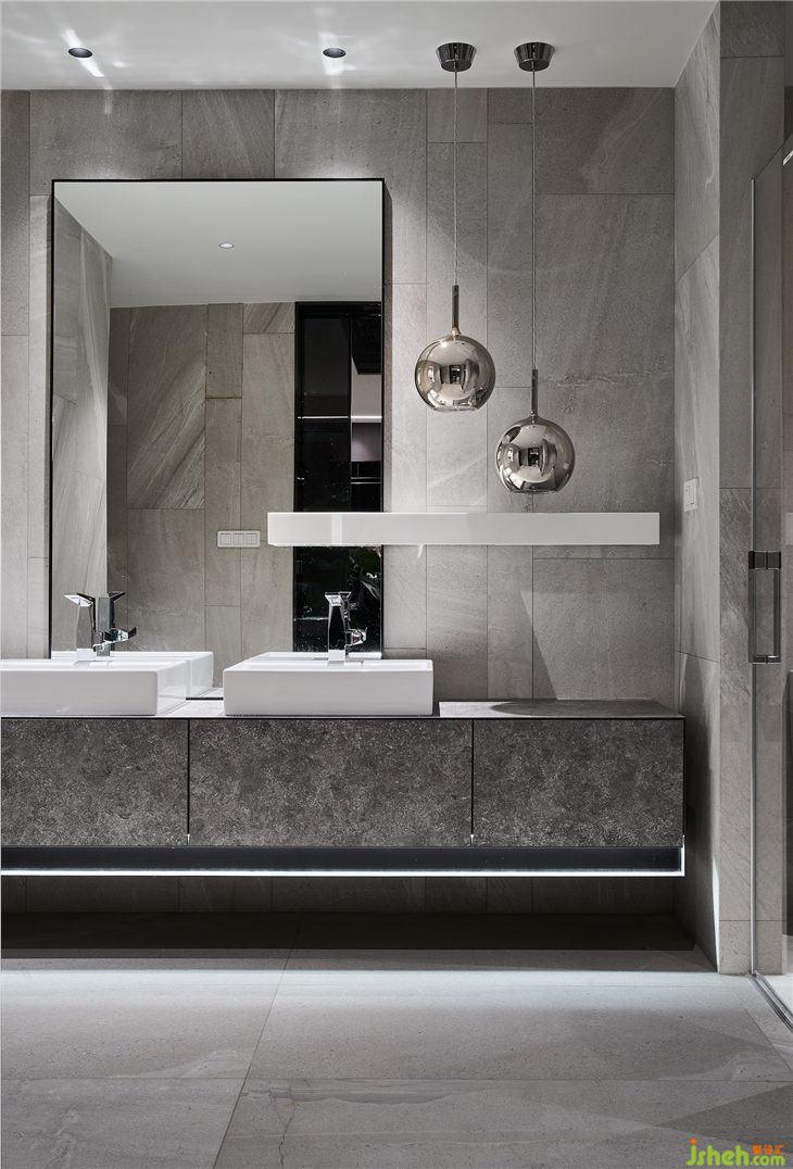 衛(wèi)生間同樣延續(xù)簡(jiǎn)潔而充滿(mǎn)張力的設(shè)計(jì)手法,在衛(wèi)浴設(shè)備選材上獨(dú)具匠心,運(yùn)用著大塊的鏡面、爵士白大理石等保持一貫優(yōu)雅,似乎在這里你就能褪去塵世的喧囂與煩惱。
