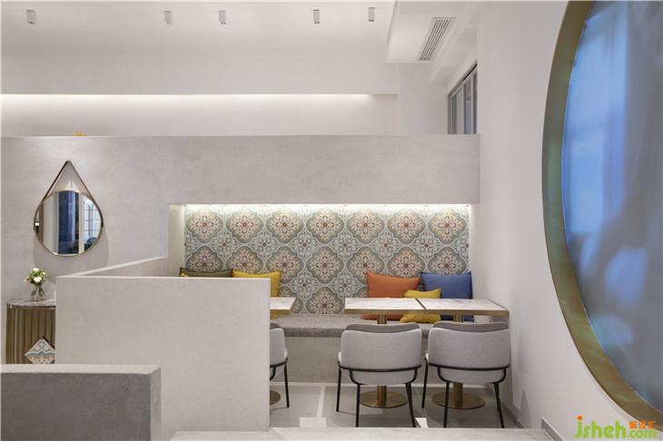 花磚和咖啡一樣,都起源于阿拉伯世界,通過海洋線路進(jìn)行傳播。地中海,伊斯蘭文明里,對(duì)于馬賽克,水磨石,幾何線條,花磚的使用,是值得每一個(gè)設(shè)計(jì)師去探究的。我們?cè)诿鎸?duì)這個(gè)案子的時(shí)候,從空間層次上先重新構(gòu)建了一個(gè)地中海式的小城堡。區(qū)別于歐洲式的古典建筑,伊斯蘭世界的小城堡的空間立面線條更為干脆利落,也更符合現(xiàn)在的審美。而水磨石立面的完整性,細(xì)節(jié)的肌理感更能表現(xiàn)這樣的“簡(jiǎn)約而不簡(jiǎn)單”。