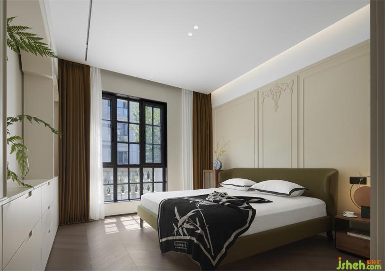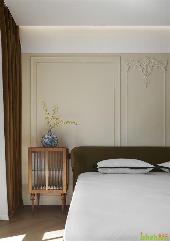 復(fù)古是致敬,亦是創(chuàng)新。在復(fù)古情結(jié)的啟發(fā)下,易昂設(shè)計重新提取早已被時間印證過的經(jīng)典元素,熟悉的符號,以現(xiàn)代的筆觸,重新去描摹。設(shè)計沒有過多的干預(yù)臥室空間,留給了靜謐的氛圍,卻又勝在韻腳。雕花石膏線以細(xì)節(jié)處的精度,四兩撥千斤,升華了整個空間的格調(diào)。