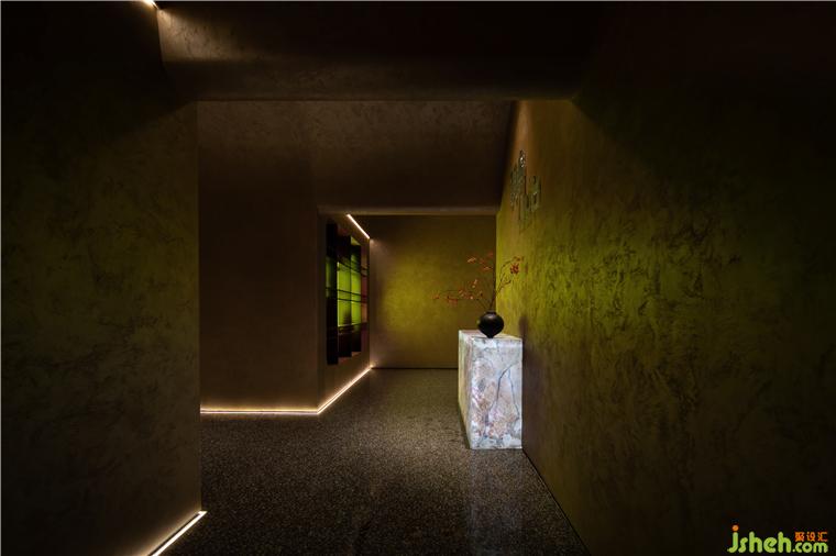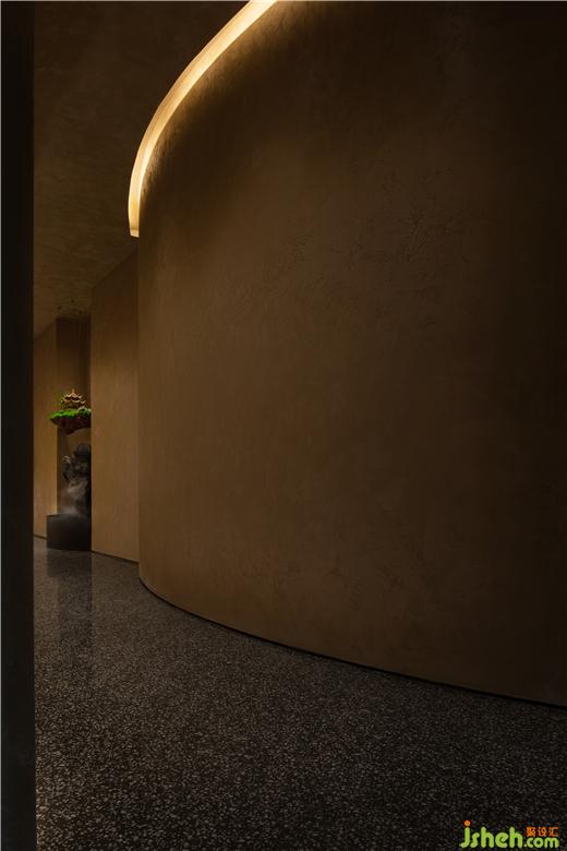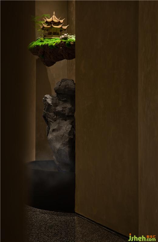 園林之趣一則是廊廡庭院的九曲連環(huán),一則是翠植怪石的奇崛清姿。CLUB設(shè)計在走廊折轉(zhuǎn)處布置山石虬枝的古典園林造景,堅韌遒勁的姿態(tài)與室內(nèi)一貫的含蓄風(fēng)格形成鮮明對比,為空間點染出藝術(shù)之魂。