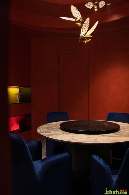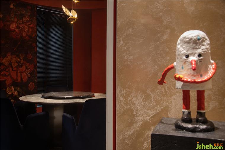 做舊墻面與新派油畫(huà)營(yíng)造出歲月的滄桑與奢華,隱隱的寫(xiě)意圖景如藏身于煙波中的遠(yuǎn)山弱水,浮動(dòng)的蝴蝶與雕塑擺件的參差相應(yīng)和,CLUB設(shè)計(jì)生動(dòng)詮釋了藝術(shù)情懷和自然哲學(xué)的詩(shī)意。