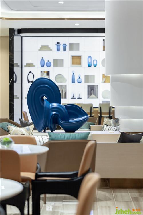 藍色藝術(shù)品打破原來空間的沉悶,動感有力的形態(tài)為空間注入一股積極蓬勃的動感和趣味。