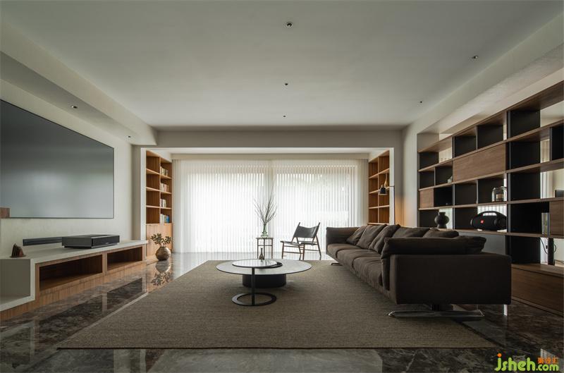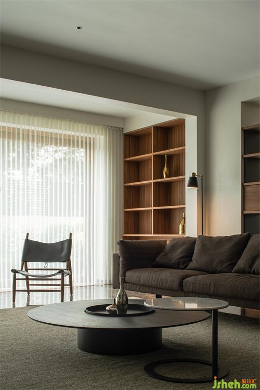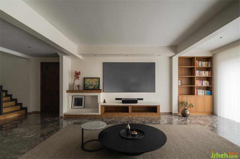 The clean and bright living room is matched with simple and advanced soft furnishings, use the bookshelf as a partition to divide the living room and the game room, breaking the conventional space division method, making the space more transparent and bright.