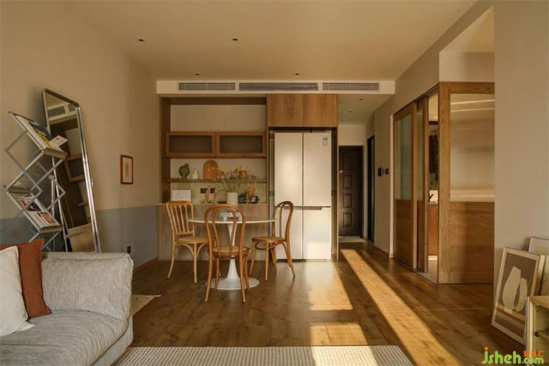 入戶區(qū)域顯得較為狹窄,我們使用了纖細(xì)的材質(zhì),使得整體空間不再狹小。