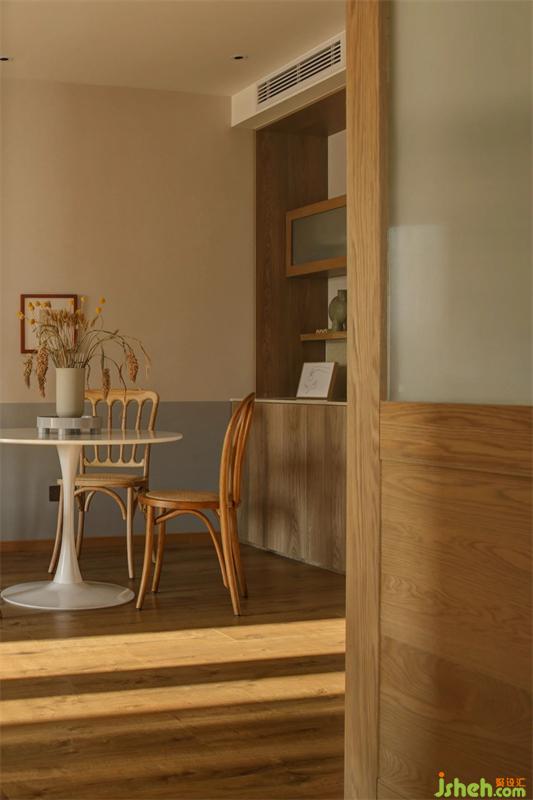 家居裝修由于廚房的空間,且采光較弱,缺乏互動性,所以我們使用了開放性的移門來補(bǔ)足原本房屋不足的問題。