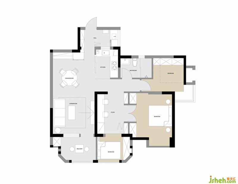 The leisure balcony area is too large and cannot be used reasonably, and the bedroom area is too small, resulting in a lack of perfection in functions.