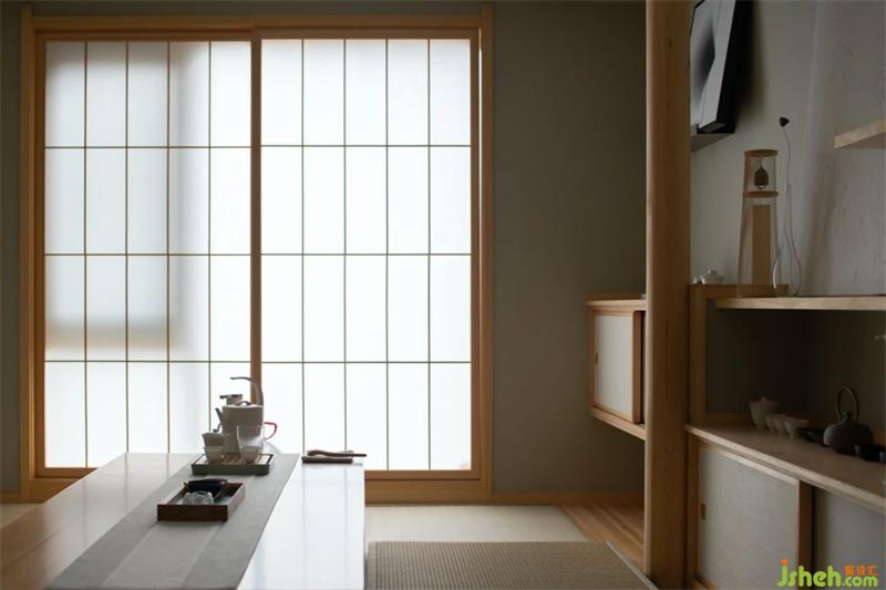 半透半隱的紙窗讓本身溫潤的空間有了一絲神秘感。
