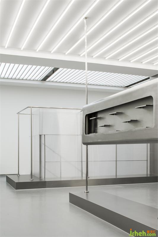 白色的空間,水泥地板,金屬質(zhì)感的衣架,感受這由空間帶來的未來感。
