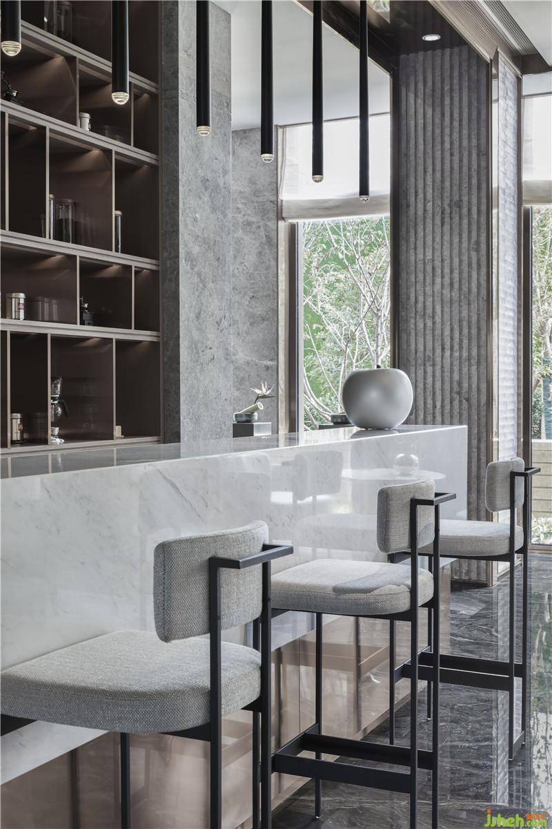 只憑單線條的勾勒,就散發(fā)出攝人心魄的力量,從吧臺到沙發(fā)區(qū),視覺區(qū)域內(nèi)各種優(yōu)質(zhì)材質(zhì)的運用——大理石、金屬、布藝軟包、陶瓷、玻璃,釋放組合的魅力,在整體上以謙卑的方式作收斂,淡然的空間更能包容內(nèi)容的喜憂。