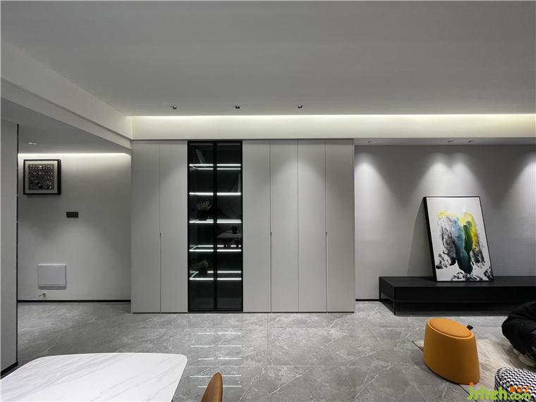 深圳裝修設(shè)計(jì)在整個(gè)餐廳的空間中,白墻作為基底,黑色不銹鋼金屬線條進(jìn)行裝飾,達(dá)到了“簡(jiǎn)”的效果,白色啞光烤漆柜門(mén)穿插玻璃柜門(mén)設(shè)計(jì)杜絕單調(diào)壓抑感,橙色和灰色皮革餐椅呼應(yīng)空間,但是沒(méi)有采用鮮艷的橙,低飽和度帶來(lái)一種低調(diào)的高級(jí)感。廚房的空間比較狹長(zhǎng),把兩邊轉(zhuǎn)角也利用起來(lái)形成“小U型”布局,灰白色作為主色調(diào),給人干凈感,上吊柜下地柜,儲(chǔ)物空間加倍,臺(tái)面是灰色巖板,易清潔且有足夠的位置洗菜備菜,給做飯者創(chuàng)造了一個(gè)簡(jiǎn)便的空間。主臥延續(xù)了客餐廳的色調(diào),在黑白灰的空間中加入橙色作為跳色,再無(wú)其他裝飾和造型,以簡(jiǎn)樸的形式展現(xiàn),其簡(jiǎn)約和極簡(jiǎn)主義創(chuàng)造了內(nèi)部個(gè)性,往往睡眠區(qū)就是要這般簡(jiǎn)單靜謐的感覺(jué)。
