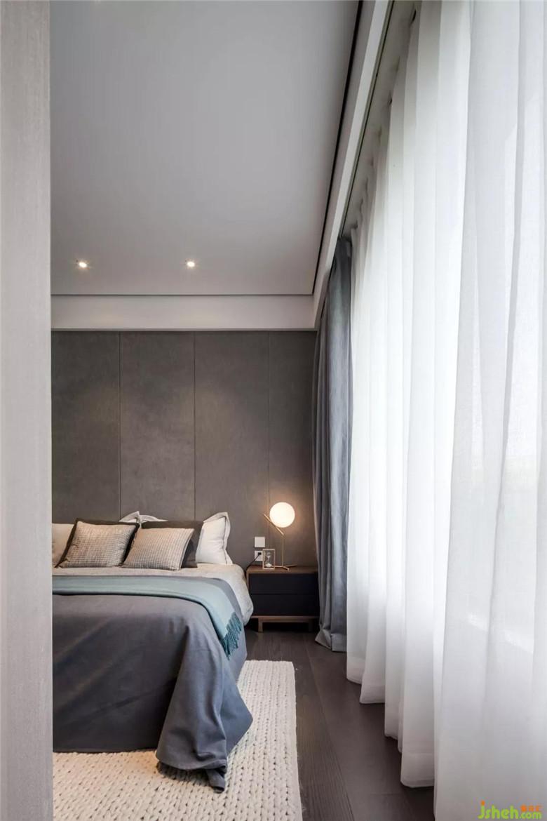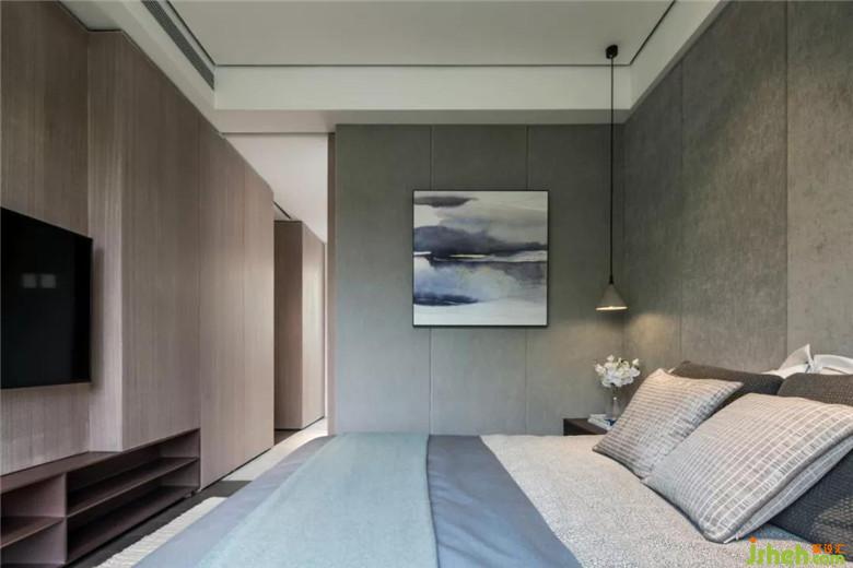 主臥空間線條舒緩,藍灰色調優(yōu)雅沉靜,一體設計的走道,使空氣自然流通。