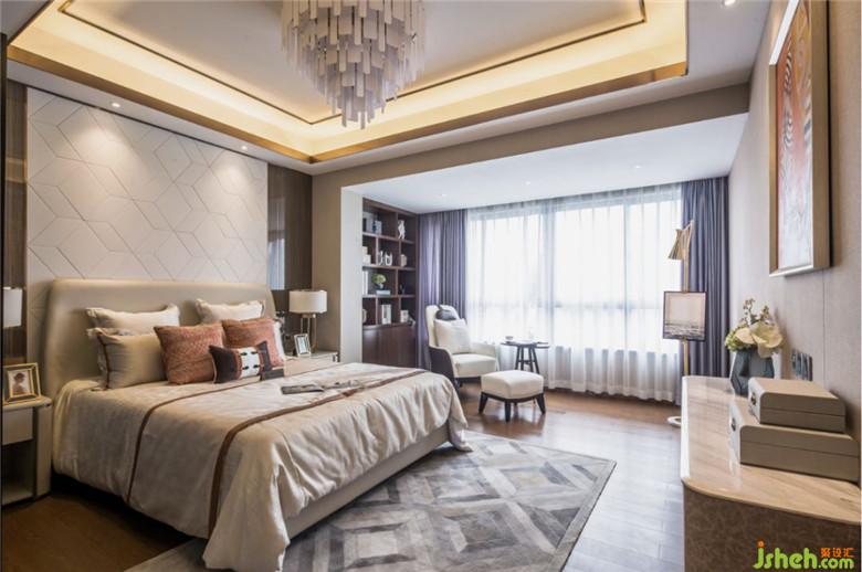 主人房為中間內(nèi)最為隱私且最具有特色的空間,如何能彰顯主的人品味?在空間陳設(shè)設(shè)計上以輕柔的色調(diào)作為鋪墊,點睛的藝術(shù)品收藏作為主人家的人文氣息的展現(xiàn)。