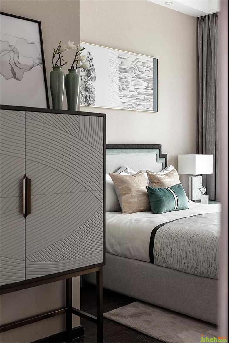 回紋邊式的床靠背結(jié)合絨質(zhì)軟包給人溫馨沉穩(wěn)的感受。品綠色的淡雅配以米黃色的點(diǎn)綴給空間帶來(lái)優(yōu)雅的靈動(dòng)感。
