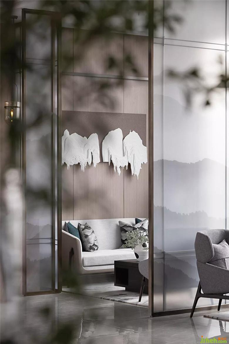 片山有致,寸石生情。將建筑的外部設(shè)計(jì)理念延展至室內(nèi),即“引山入室,引水造景”,把人對自然最本能的感受化為符號引入空間,讓整個(gè)場域“于莊重之中見生機(jī),于淡雅之中見貴氣 ”。