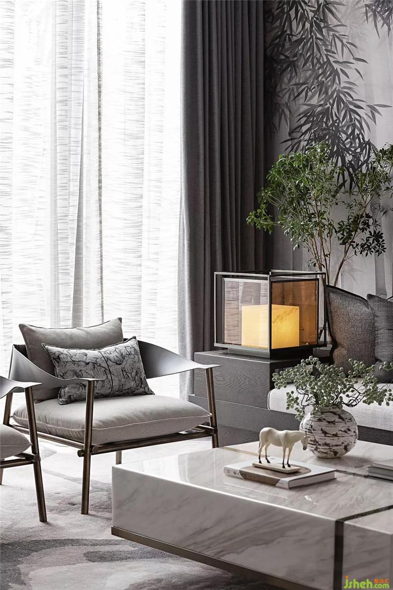 微風(fēng)細(xì)細(xì),修竹影交加,月色與流水雅澹相生,讓人恍若棲隱山林,塵囂皆濾,心歸靜寧。溫潤光澤的玉馬雕塑,仿若時(shí)刻靜觀霧隱竹林,白色的基底上暈染開的黛色,一灰一白簡單的色彩對比,使空間格局顯得愈加純粹與強(qiáng)烈。屏風(fēng)的靈動(dòng)感,出眾而不張揚(yáng),它重新定義了神秘的東方氣韻。