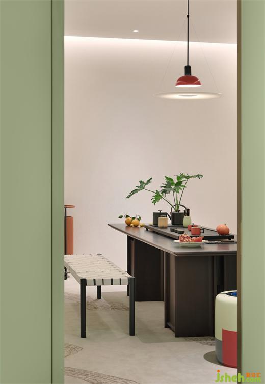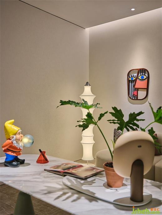 空間不見(jiàn)光卻籠罩上一層薄薄的光感,將整體氛圍調(diào)適至最接近生活的感受,高度自由的混搭布設(shè),讓空間的每一處流轉(zhuǎn)著生活的隨性與小幽默。