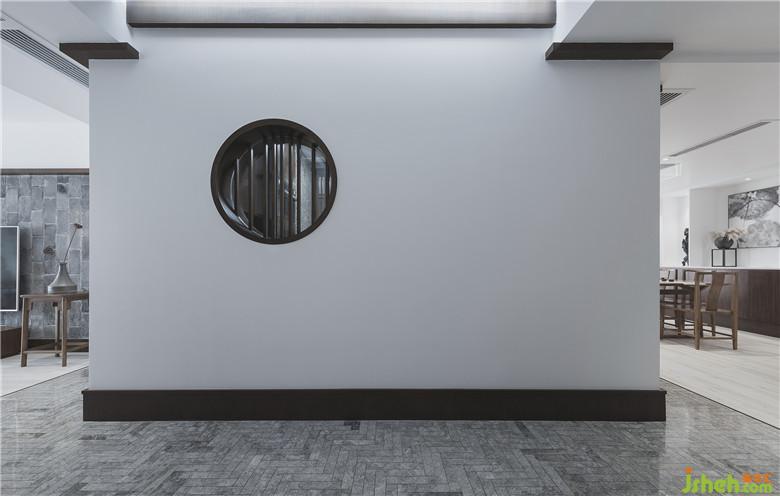 室內(nèi)設(shè)計(jì)師同時(shí)在布局上借鑒中國(guó)傳統(tǒng)四合院的建筑構(gòu)思,對(duì)現(xiàn)有的戶型進(jìn)行拆分、重組,形成“進(jìn)式”院落。造型整體以徽派建筑為載體,一樓從宅門(mén)進(jìn)入,入眼便是影壁,中為庭,庭四周環(huán)繞分布著外院、內(nèi)堂及廂房。