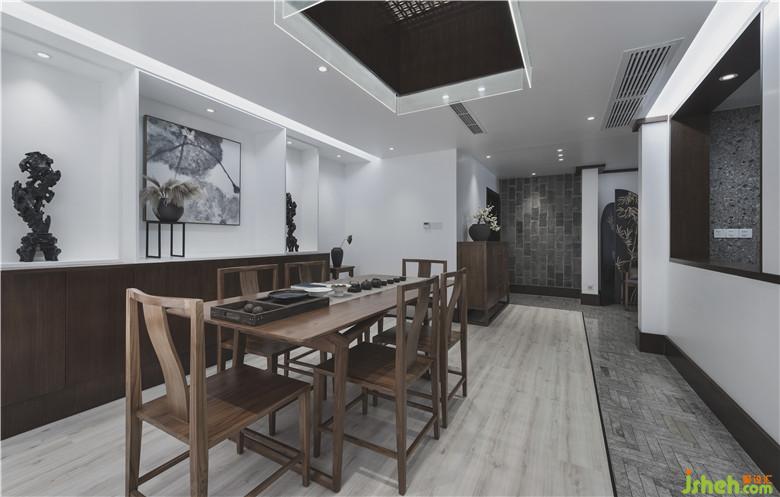 本案定位是現(xiàn)代、東方,但不想氛圍太過(guò)嚴(yán)肅,所以室內(nèi)設(shè)計(jì)師以庭院為核心,在空間中營(yíng)造恬淡、閑趣的輕松氛圍。