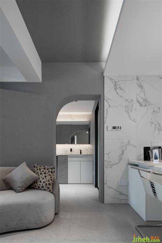 過(guò)道將不同功能區(qū)域交匯相連,采用半拱形的門洞設(shè)計(jì),視覺(jué)上有延伸,也不壓抑。