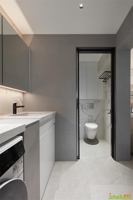 大面的鏡柜足以解決衛(wèi)浴空間零散的收納需求,易于清理,同時(shí)讓空間得到更大的延伸,造型簡(jiǎn)約美觀。
