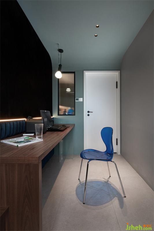 小空間也要注重體塊的關(guān)系,在有序的排列下還能營(yíng)造出一種豐富的節(jié)奏,其靠墻空間,書桌與柜體充分結(jié)合,放眼一看,現(xiàn)代感十足。