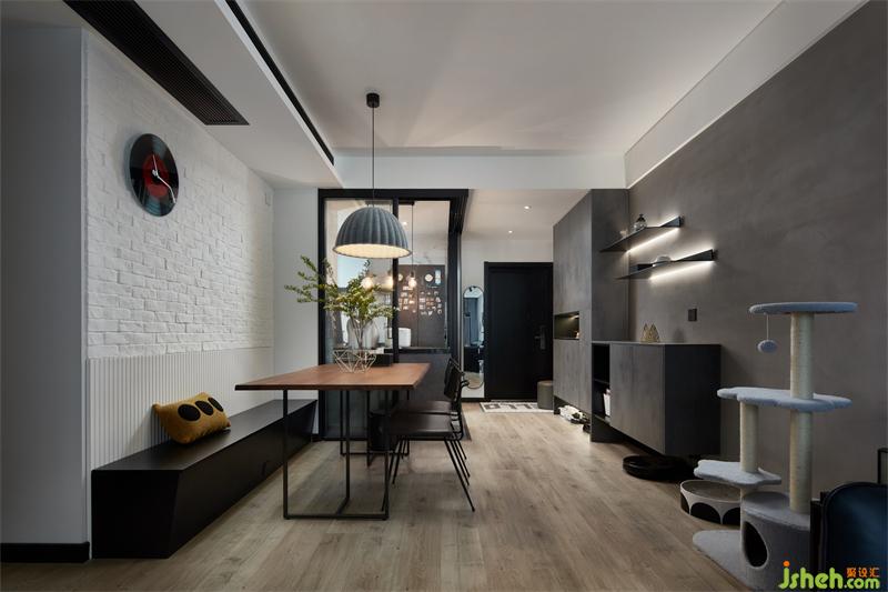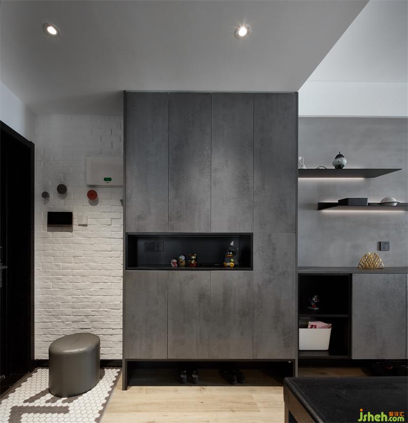 入戶處復古的白色文化磚墻,搭配無把手的深灰色鞋柜,兼具時尚與藝術感,現代與工業(yè)風完美融合,將屋主的品位與個性展現的淋漓盡致。