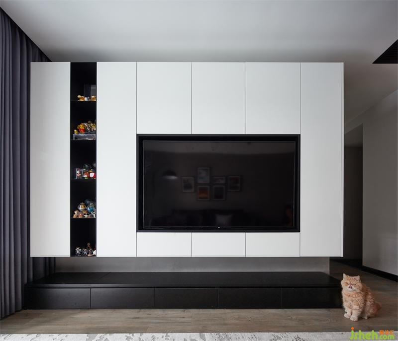 原木色地板和白色柜體柔化工業(yè)風帶來的冷峻感,打造溫馨舒適的家庭環(huán)境,懸浮電視柜頂部做了留空處理,無把手設計更顯干凈整潔,避免造成視覺擁堵,讓空間更顯輕盈。